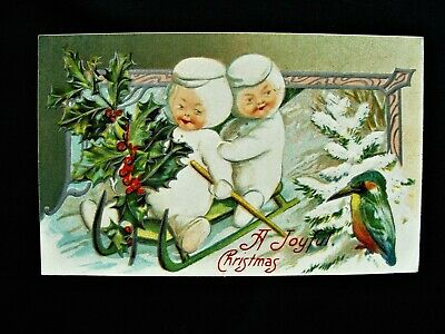 Title (ebay affiliate link): Snow Babies On Sled w Holly Colorful Bird Winsch? Embossed Christmas Postcard