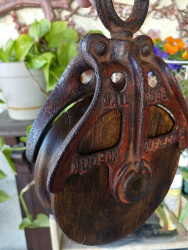 Title (ebay affiliate link): Antique Vintage Hudson Wood and Iron Barn Pulley, Block and Tackle