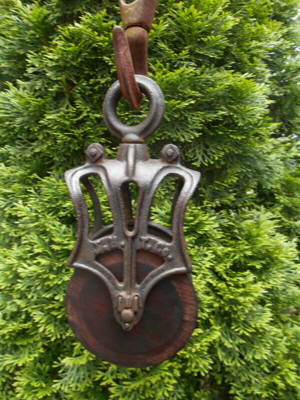 Title (ebay affiliate link): J.H.T. Co. Antique Cast Iron Barn pulley Farm Rustic Primitive RARE