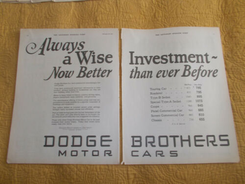 Title (ebay affiliate link): 1926 DODGE BROTHERS TWO PAGE ANTIQUE CAR AD TOURING COMMERCIAL CHASSIS PANEL ART