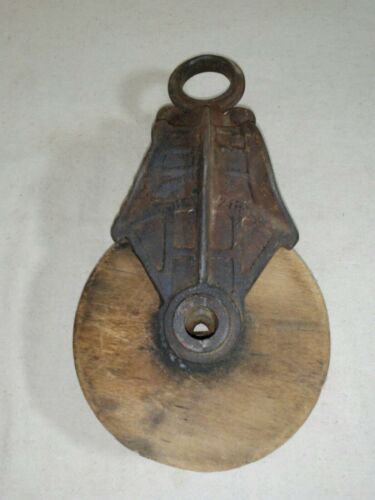 Title (ebay affiliate link): Vintage antique Wood Cast Iron barn hay pulley Block Tackle