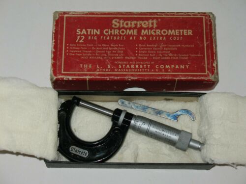 Vintage STARRETT No. 436 1 Inch Satin Chrome Micrometer Machinist Tool w/Wrench
