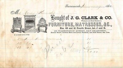 Title (ebay affiliate link): ANTIQUE CALIFORNIA RECEIPT SACRAMENTO 1860 CLARK FURNITURE MATTRESSES BILLHEAD