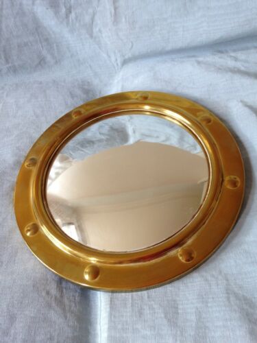 Vintage Brass Round Porthole Wall Mirror Convex Round Nautical 10" Diameter