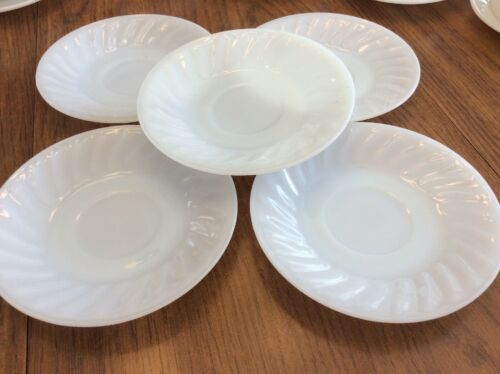 Fire King Oven Ware White Milk Glass Swirl 5 3/4" Saucer Plate USA 5 Ea. Vintage