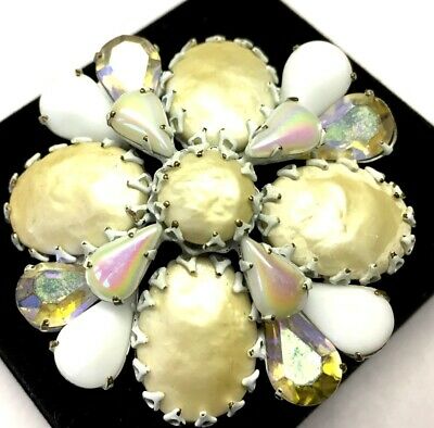 RARE Vintage Brooch Pin SIGNED REGENCY White Milk Glass Rhinestone Jewelry lot x