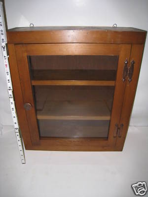 Title (ebay affiliate link): Vintage Retro Medicine Cabinet Display Glass Case Pine