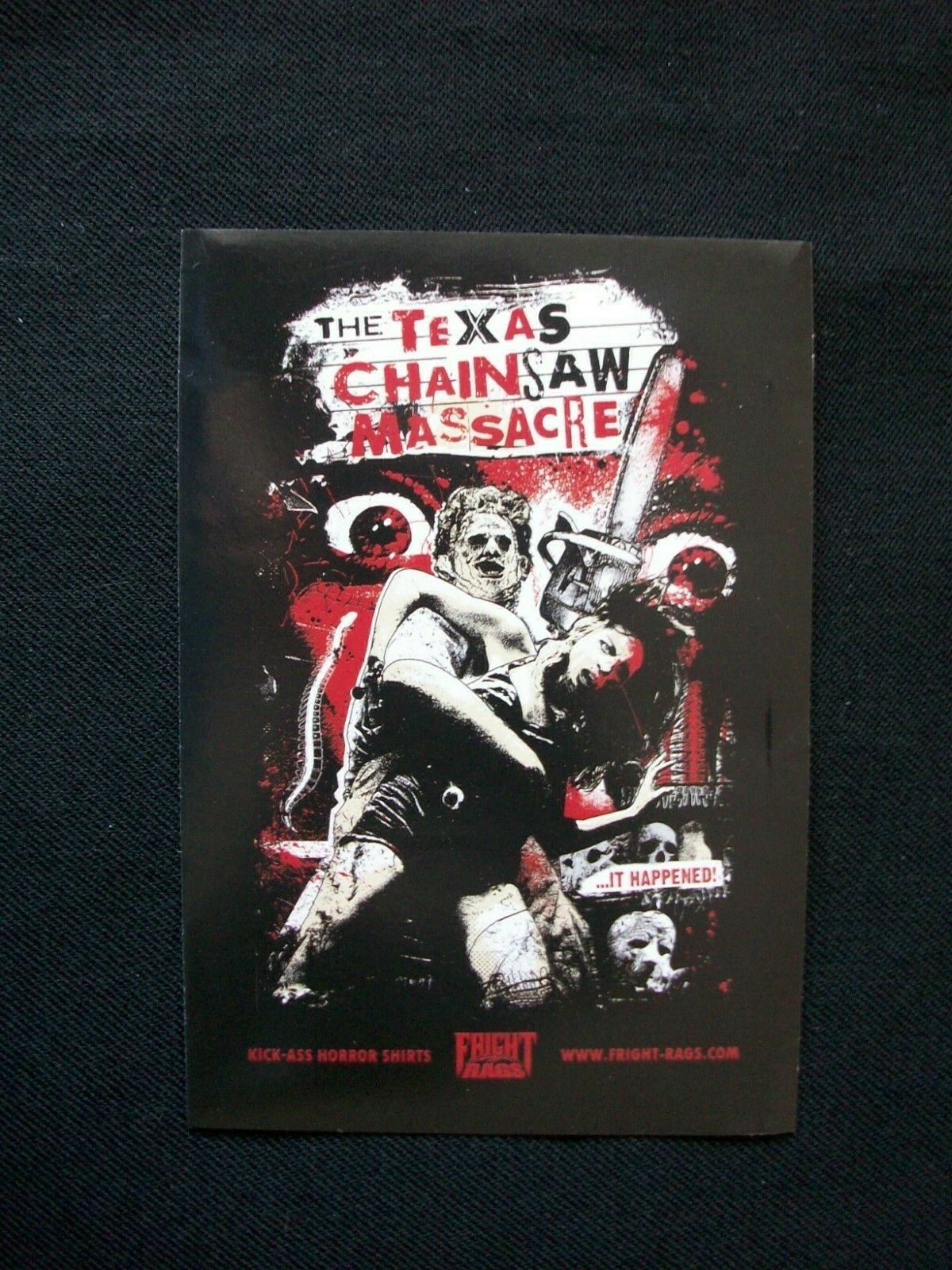 Title (ebay affiliate link): TEXAS CHAINSAW MASSACRE MOVIE TRADING CARD PROMO STICKER USA FRIGHT RAGS NM