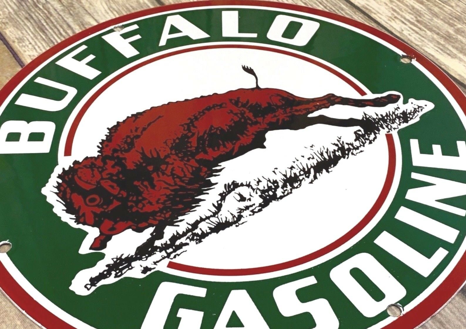 Title (ebay affiliate link): VINTAGE BUFFALO GASOLINE PORCELAIN SIGN GAS MOTOR OIL SERVICE STATION PUMP PLATE