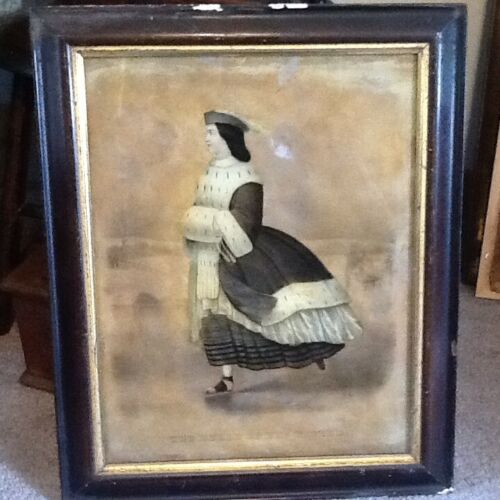 Title (ebay affiliate link): CURRIER & IVES REVERSE LITHOGRAPH Painting? GLASS "THE BELLE OF THE WINTER" AAFA