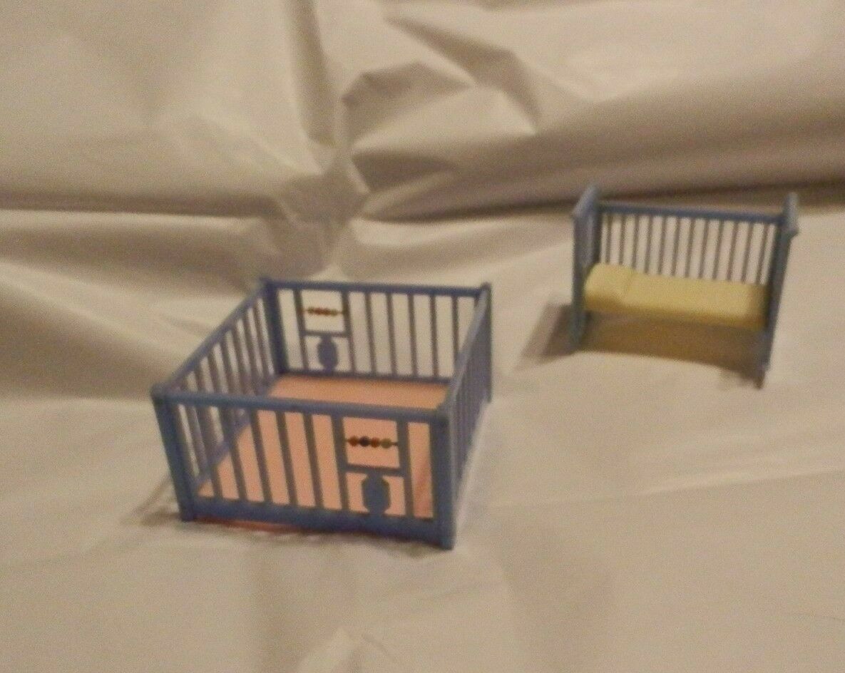 Vintage Plastic Doll House Furniture Nursery Blue Playpen w/beads Renwal