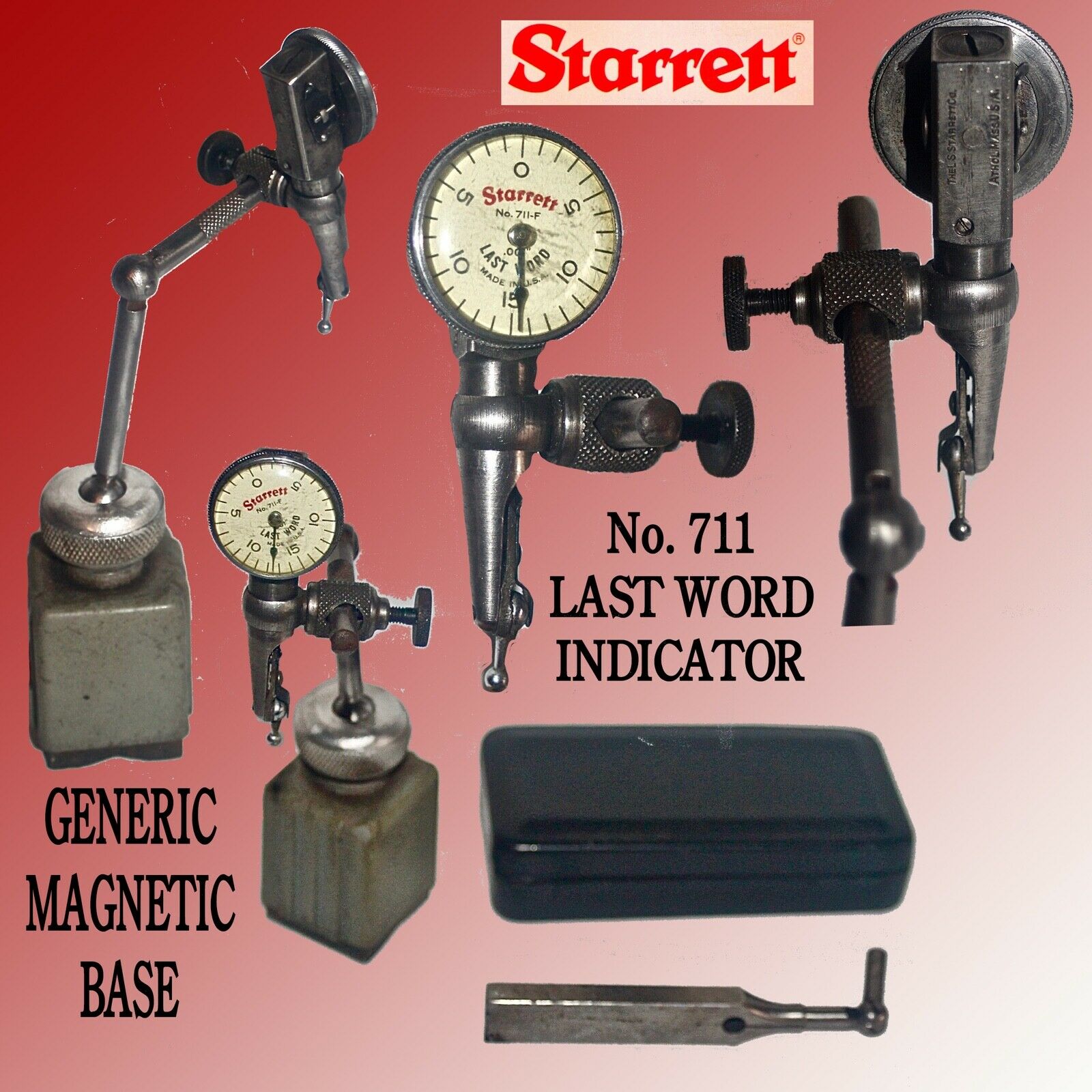 Title (ebay affiliate link): STARRETT # 711F LAST WORD DIAL INDICATOR & GENERIC MAGNET BASE & POST ASSEMBLY