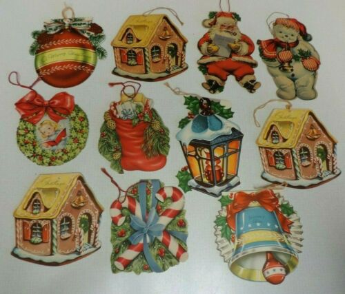Title (ebay affiliate link): RARE VINTAGE CHRISTMAS CARD HANG UP ORNAMENTS UNUSED 11 PIECES 1940''S OR ''50''S