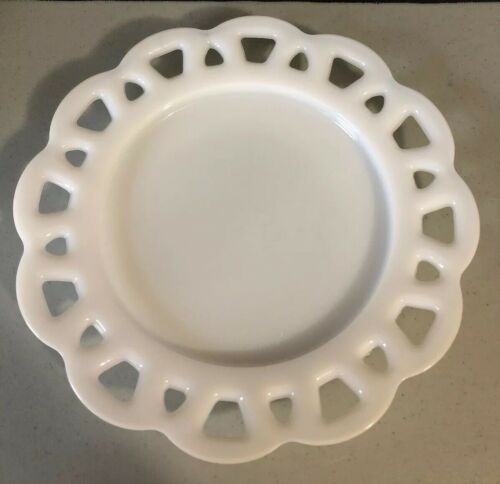 Vintage Milk Glass Plate Scalloped Lace Edge