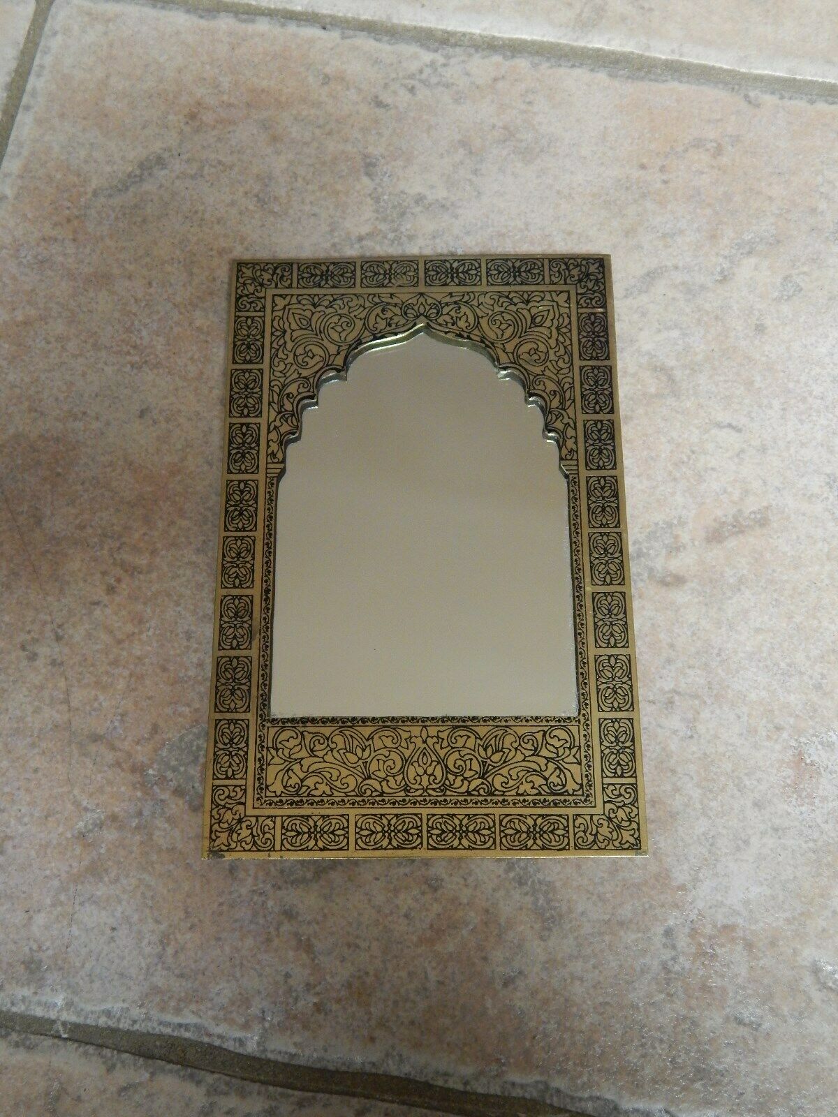 Title (ebay affiliate link): VINTAGE, ANTIQUE ART NOUVEAU SOLID ETCHED BRASS WITH FLORAL DESIGN MIRROR