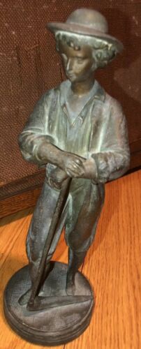 Antique Bronze Figure depicting a Farm Boy Scythe Great Patina