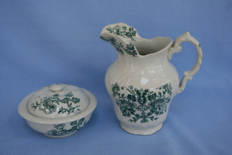 Antique England Transferware Wash Pitcher & 3 Piece Soap Dish