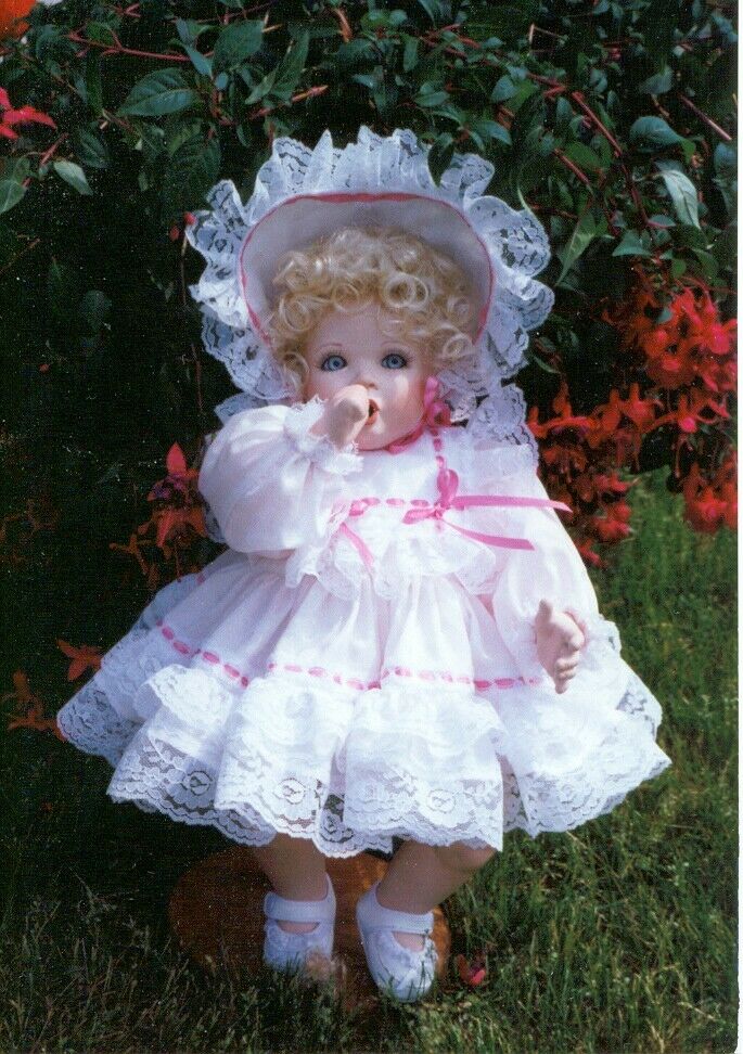 Title (ebay affiliate link): 18"-19" Baby Doll Dress Bonnet panties Pattern fit Antique + many more 1974 easy