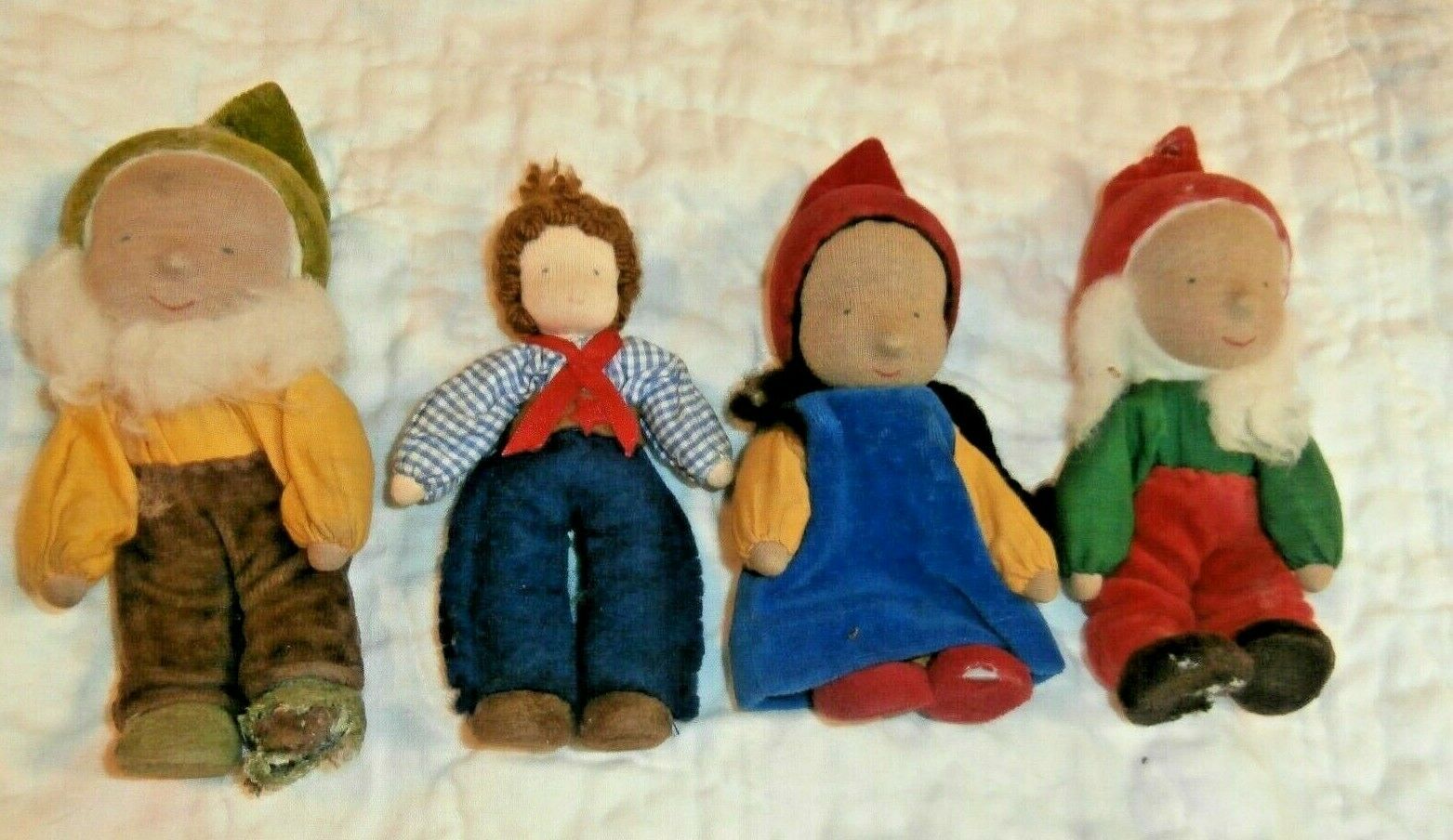 Lot of 4 Antique/vintage 5" MINIATURE CLOTH STOCKINETTE DOLLS