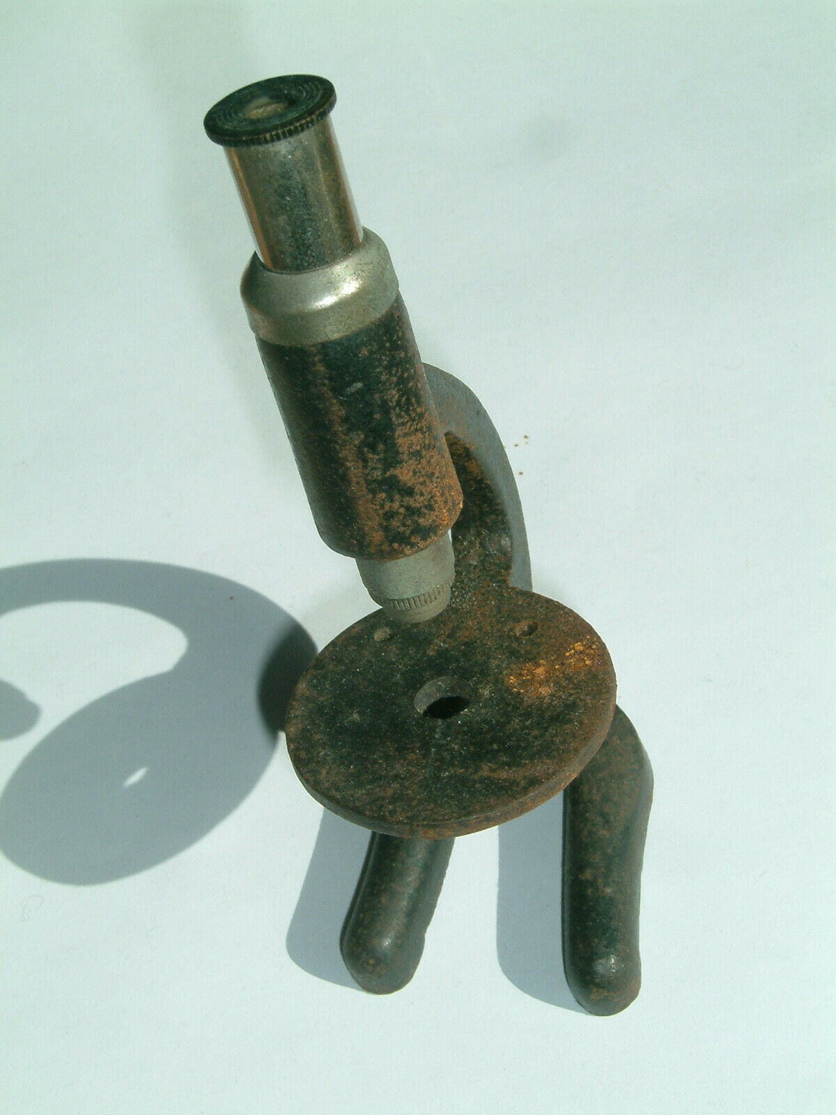 Title (ebay affiliate link): Old Victorian microscope, single lens drawtube type, about 6 inches tall