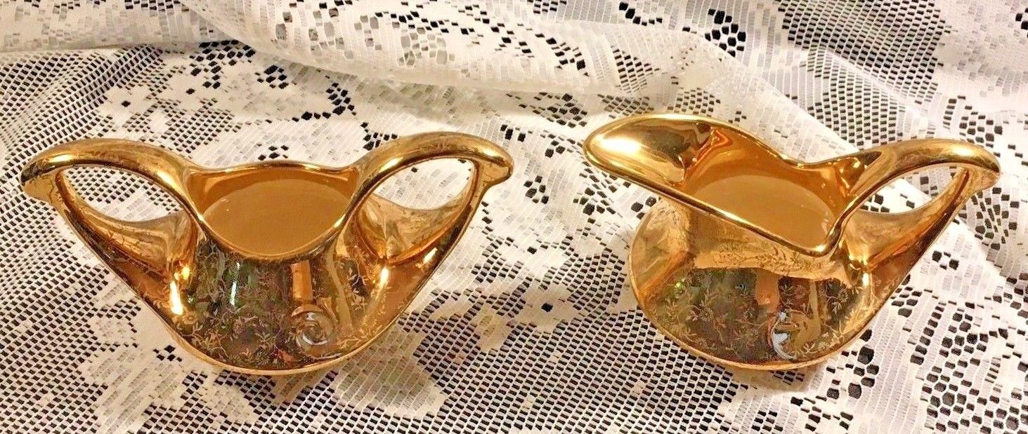 Pearl China Company 22 KT Gold Creamer & Sugar Hand Painted
