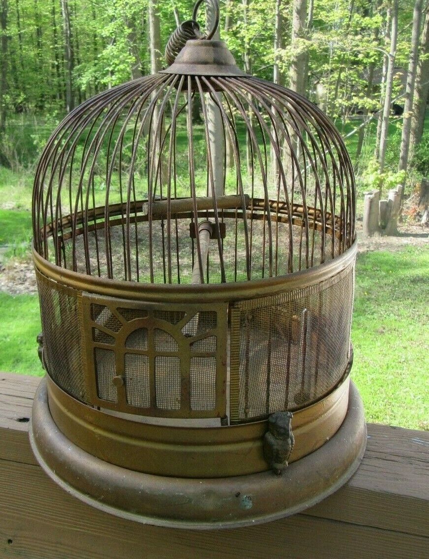 Title (ebay affiliate link): Wonderful Antique Metal Bird Cage with Owl Decor and Removable Under Tray