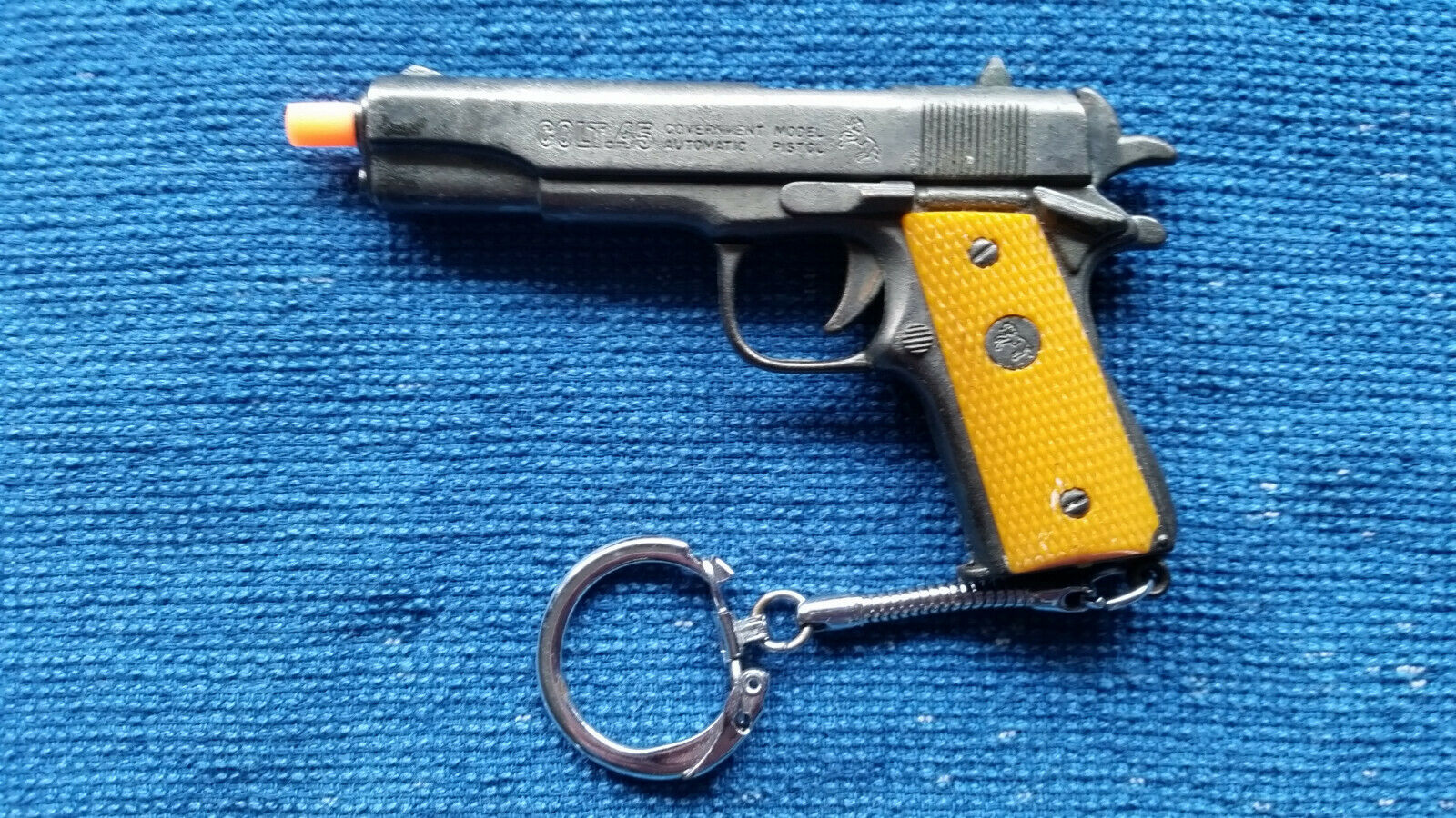 Title (ebay affiliate link): Vintage Miniature Dong San Colt .45 Revolver Cap Gun, 3" x 2", Key Chain