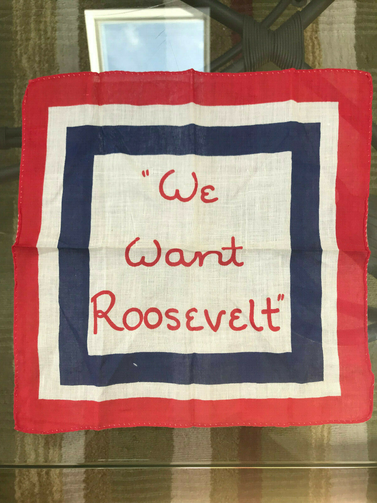 Title (ebay affiliate link): 1930''s We Want Roosevelt Red White & Blue Presidential Handkerchief
