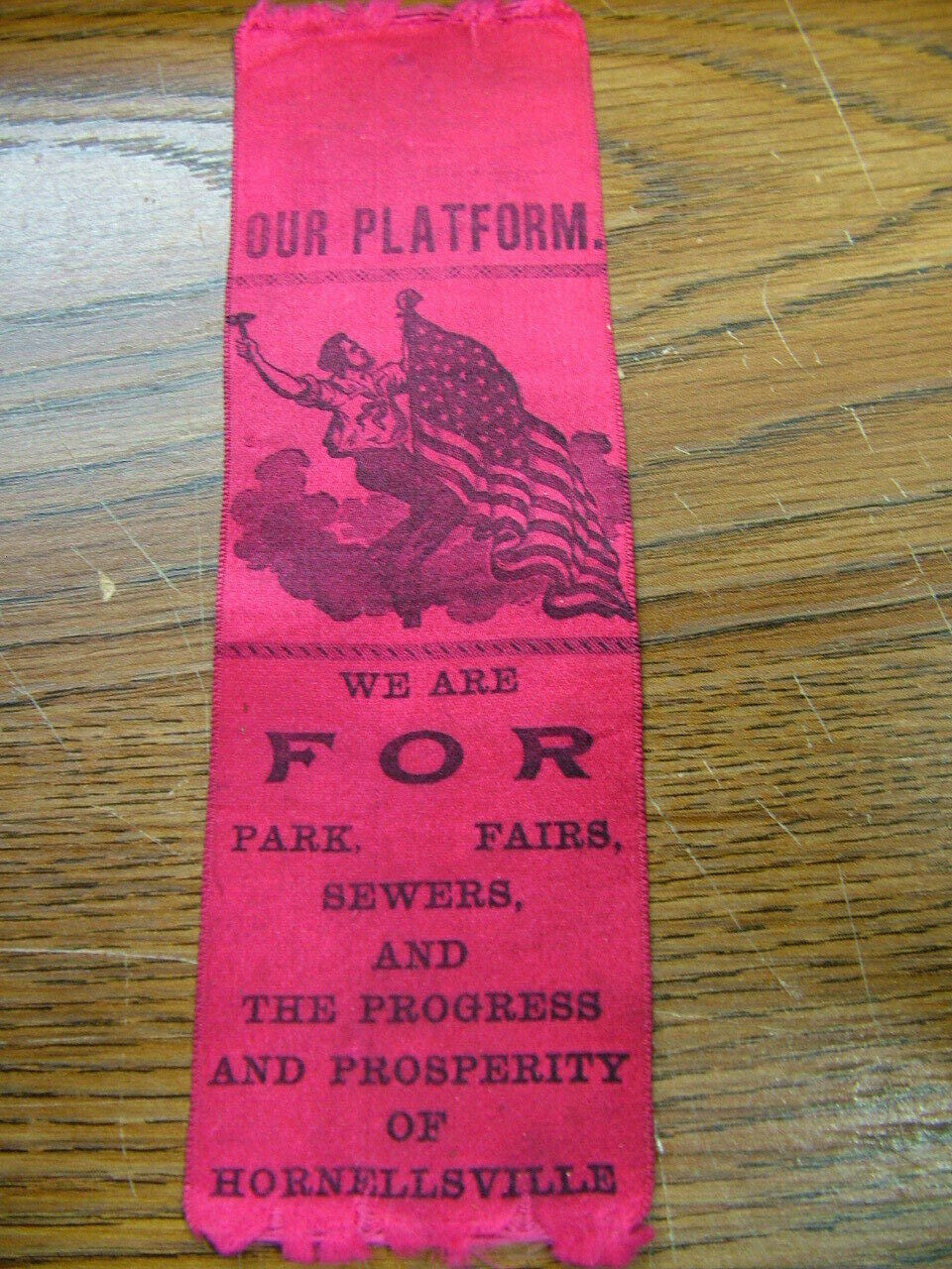 19th Century Hornellsville NY Political Campaign Ribbon.... Hornell NY