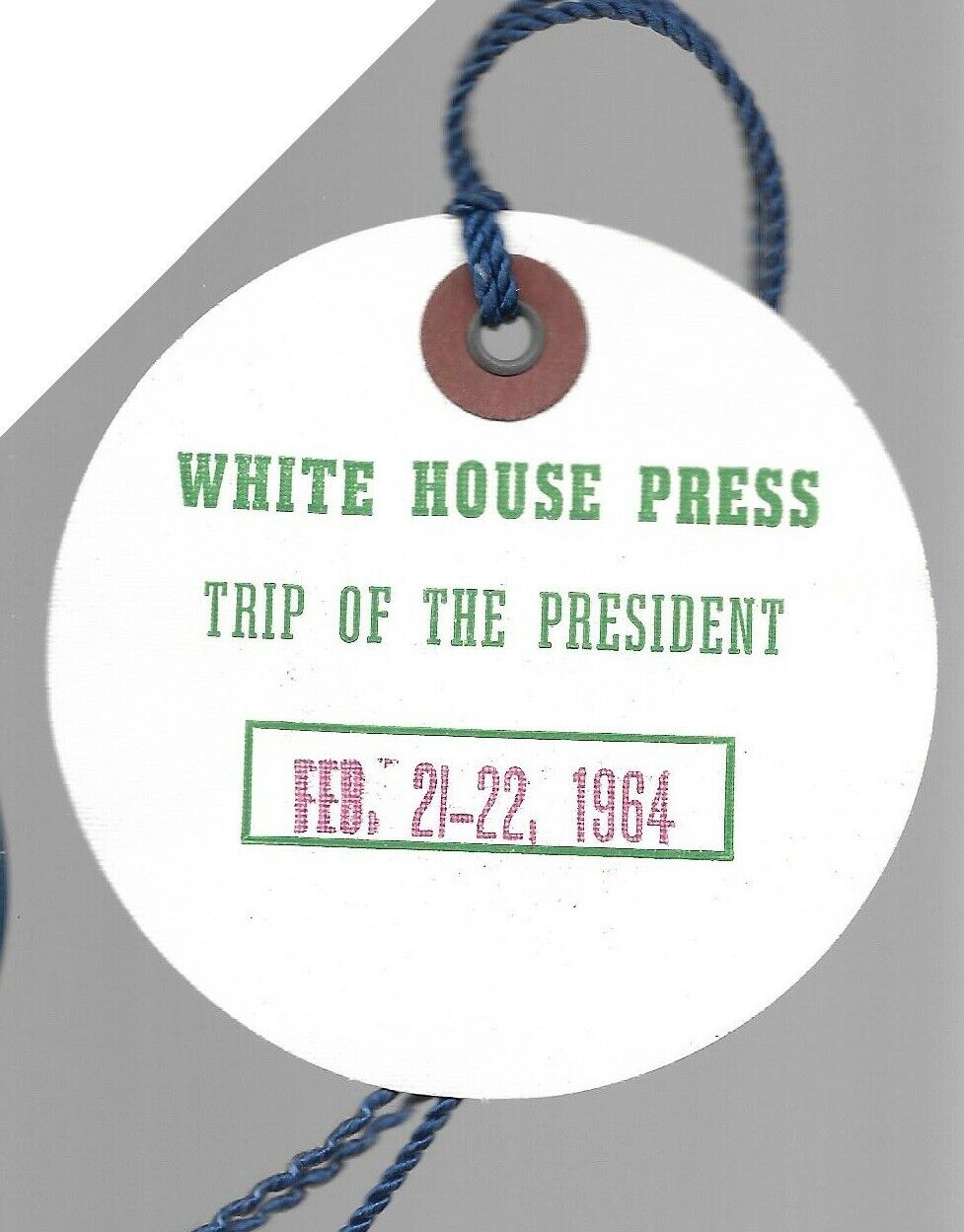 Title (ebay affiliate link): LYNDON JOHNSON WHITE HOUSE PRESS FEB. 1964 TRIP LUGGAGE TAG, BADGE