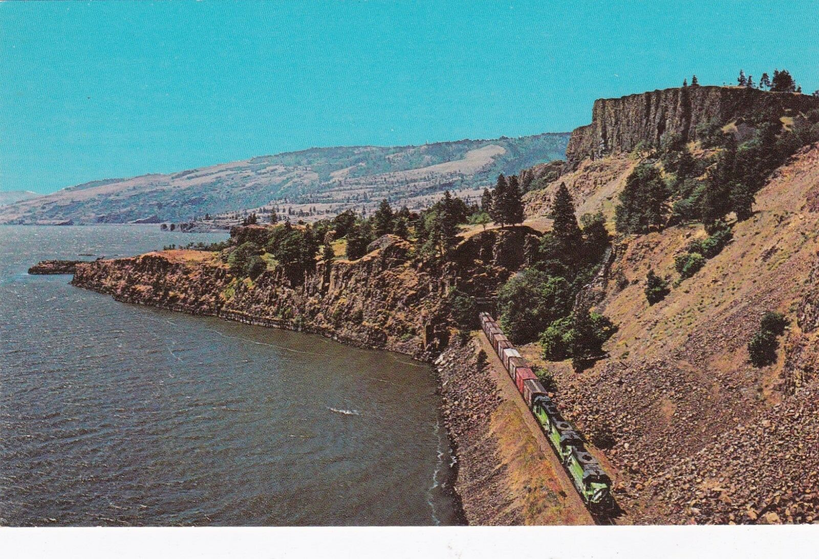 Title (ebay affiliate link): VINTAGE TRAIN POSTCARD - BURLINGTON NORTHERN - COLUMBIA RIVER PORTLAND OREGON