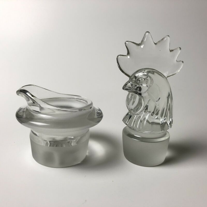 Title (ebay affiliate link): 2 Piece Clear Glass Figural Chicken Rooster Head Bottle Stopper Apothecary Lid