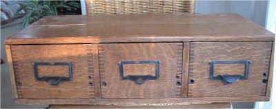 Title (ebay affiliate link): Vint Tiger Oak Three Drawer Card File Desk File Cabinet
