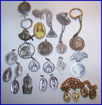 Lot of Vintage Religious Medals, Keychains, ETC