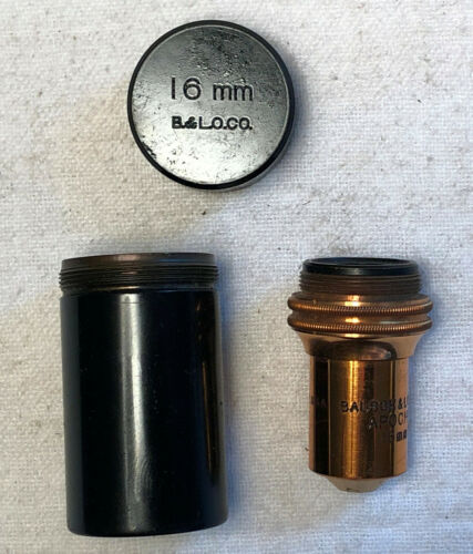 Title (ebay affiliate link): Antique MICROSCOPE Objective Bausch & Lomb OPT Co APOCHROMAT 16mm 0.30 10X 1365