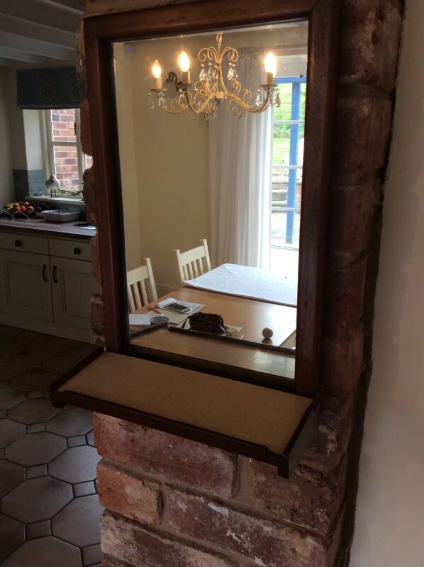 Title (ebay affiliate link): Old Antique Wooden Oak Framed Victorian Wall Shaving Mirror With Added On Shelf.