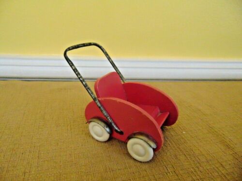 Title (ebay affiliate link): VTG Baby Doll Carriage Stroller Wood chair seat EAST GERMANY toy dollhouse pink