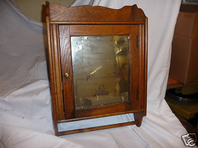 Mirror Antique Oak Medicine Cabinet / Spice Rack