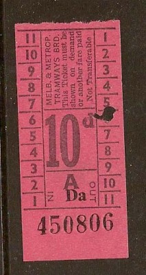 MELBOURNE TRAMWAYS 10d TRAM TICKET