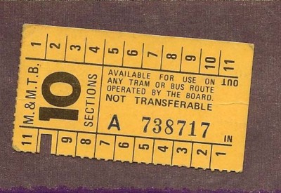 MELBOURNE TRAMWAYS 10 SECTIONS TRAM TICKET