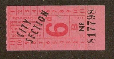 MELBOURNE TRAMWAYS 6d CITY SECTION RED TRAM TICKET