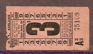 ADELAIDE TRAMWAYS 1948 3d TRAM TICKET
