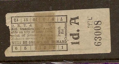SYDNEY TRAMWAYS 1945 1d ROCKDALE TRAM LINE TICKET