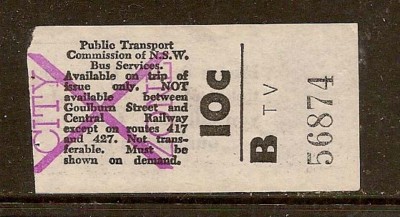SYDNEY BUSES 1971 10c TEMPE BUS DEPOT CBD TICKET