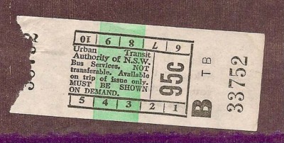 SYDNEY BUSES 1981 95c TEMPE BUS DEPOT TICKET