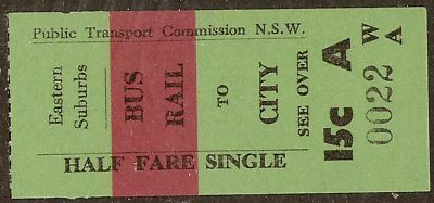 SYDNEY BUSES 1979 15c BONDI RAIL BUS TICKET