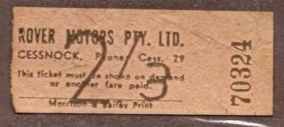 CESSNOCK BUS LINES NSW 1949 2/3 BUS TICKET