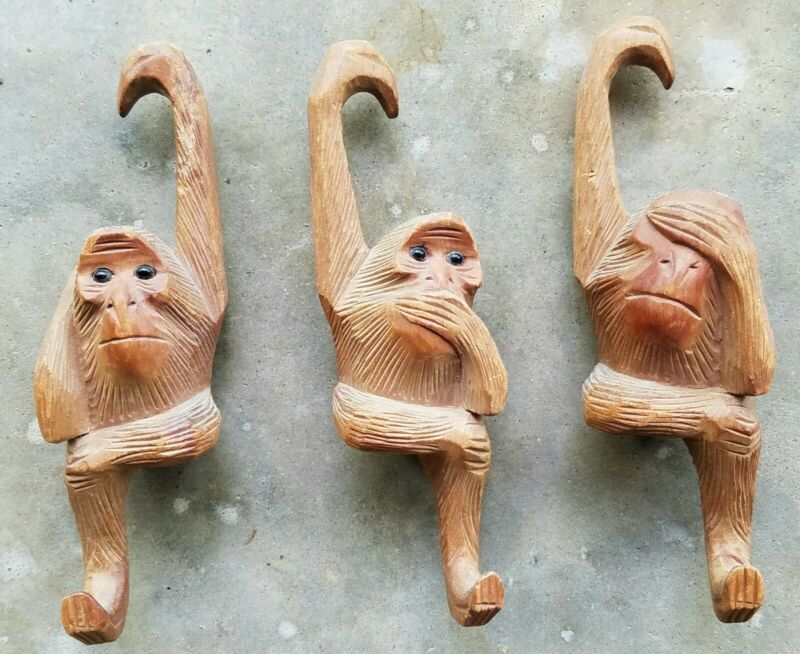 Title (ebay affiliate link): 1920-30s Folk Art Carved Hanging Glass Eyed Monkeys