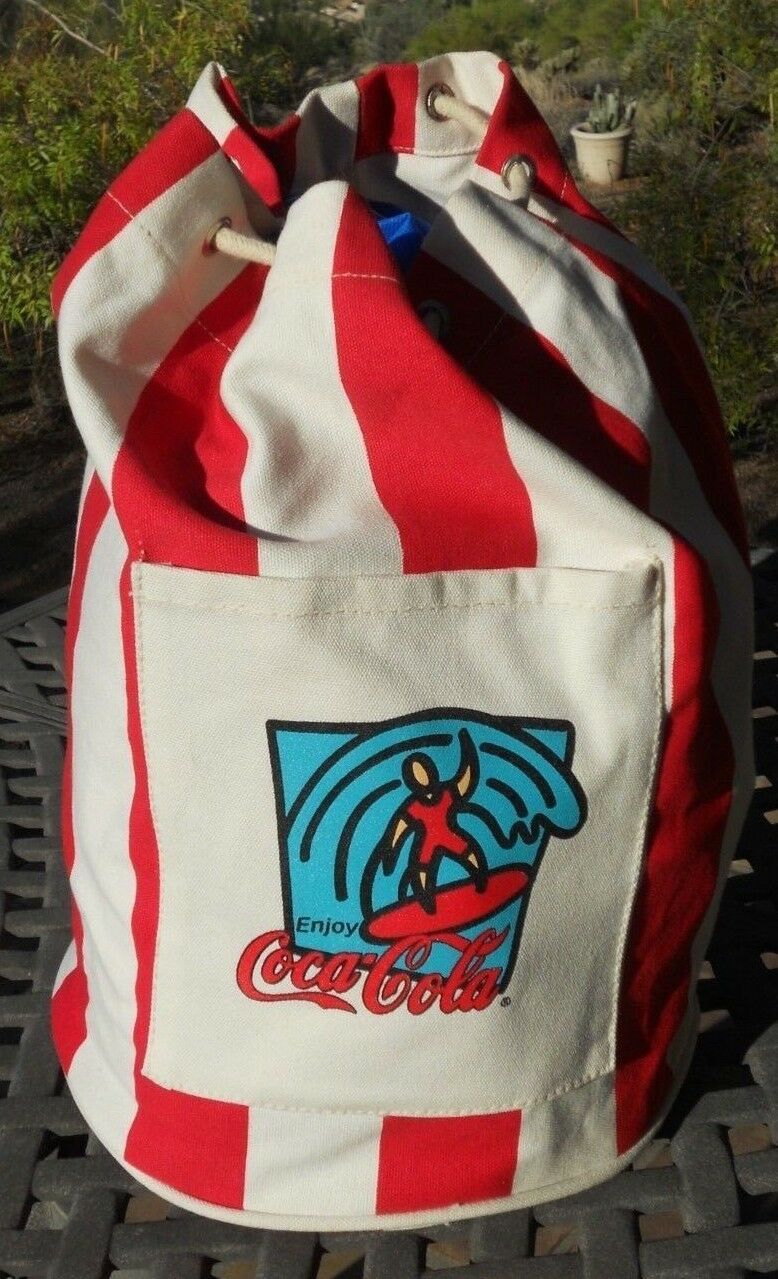 Title (ebay affiliate link): REDUCED! Vintage? Red White Canvas Coca-Cola Coke Round Beach Tote Bag