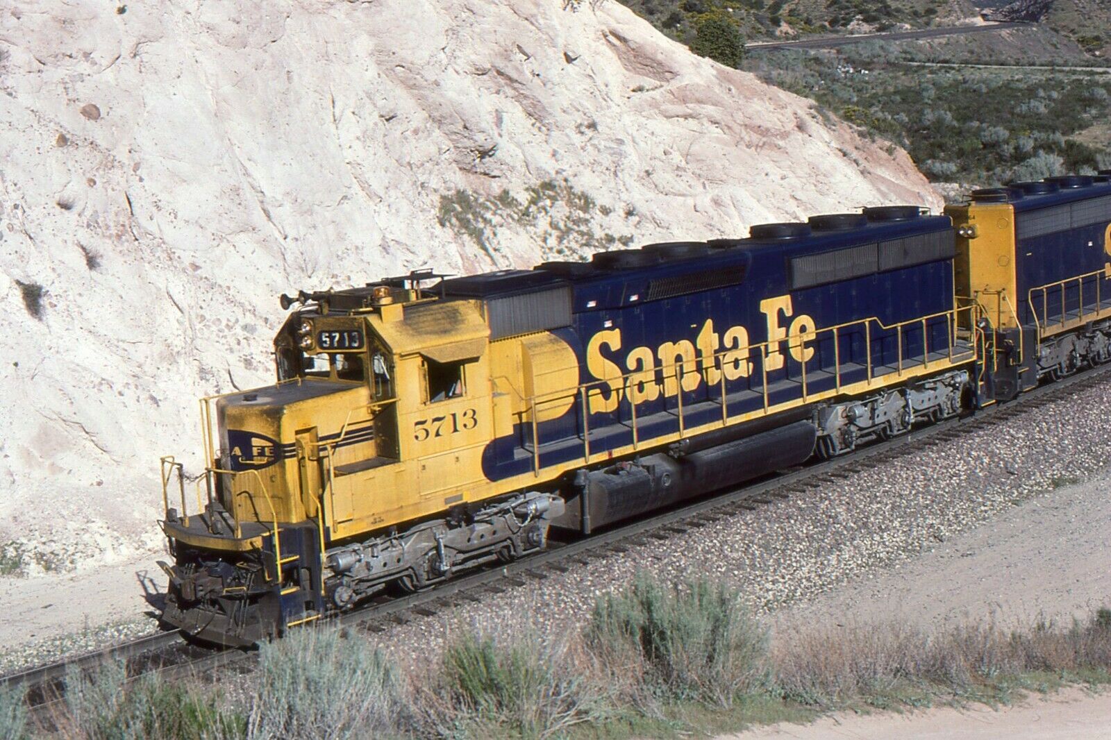 Title (ebay affiliate link): Original slide-Santa Fe SD45-2 #5713 In Action/ Cajon Pass,CA. April 1989-Nice!